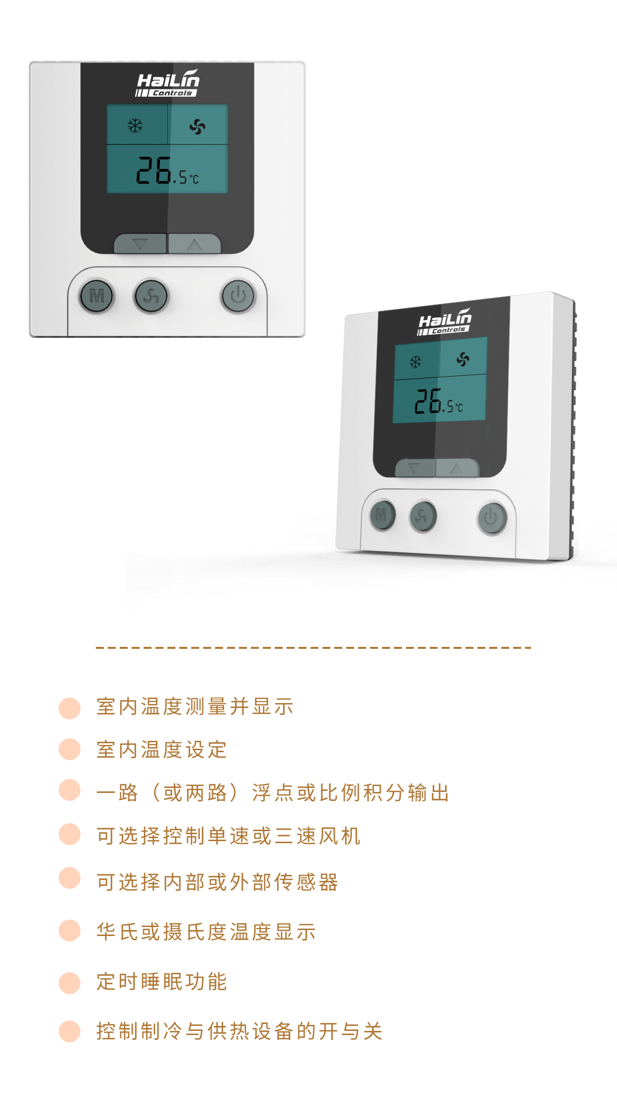 HL7031DB2-L溫控器采用微電腦控制技術(shù),大屏幕液晶顯示,液晶顯示狀態(tài)有:制冷、制熱、通風(fēng)、溫控器輸出、室內(nèi)溫度、設(shè)置溫度等。按鍵有:啟停鍵、功能設(shè)置鍵、風(fēng)速鍵及溫度調(diào)整鍵。