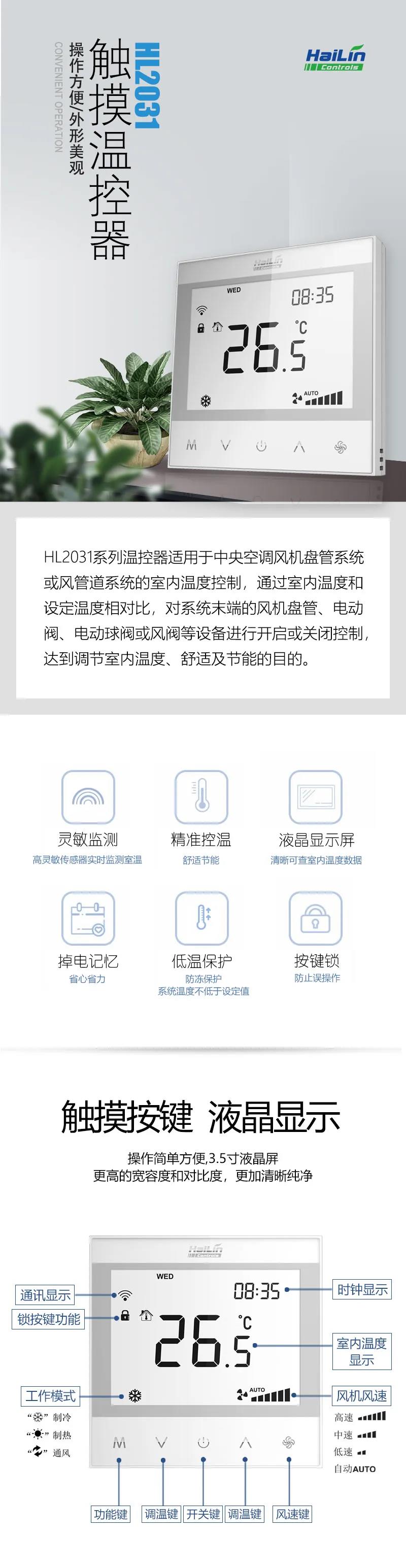 海林HL2031溫控器凝聚了海林節(jié)能21年匠心工藝,專為每一個認真對待生活的用戶傾情打造,是簡單實效的室內(nèi)環(huán)境舒適體驗誠意之作!