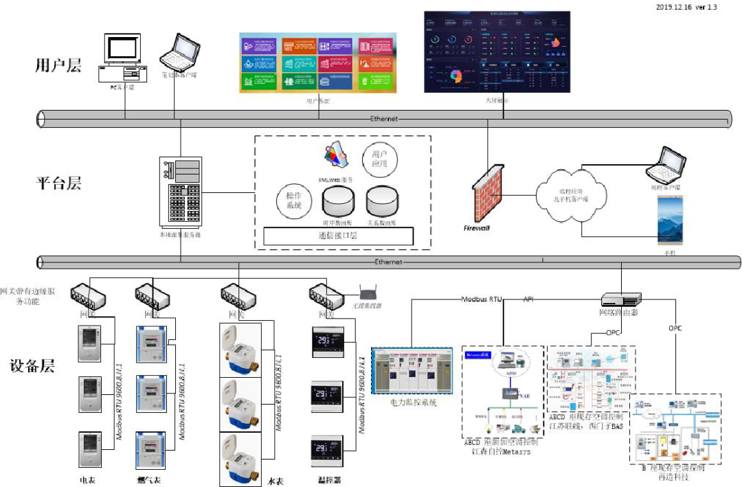 其數據來源可以是各類智能設備和數據采集器直接獲取的實時數據,或是其它第三方計量采集系統的數據庫,也可以通過Modbus通信、BACnet通信、OPC等方式與支持對應協議的計量采集設備、計量采集系統實時通訊,自行存儲數據。