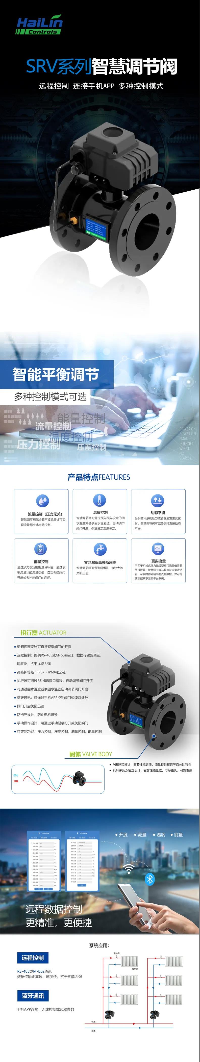 海林SRV系列智慧調(diào)節(jié)閥采用RS-485 或 M-Bus通訊,實現(xiàn)遠程控制;與手機APP連接,實現(xiàn)無線控制,手機讀取參數(shù);多種控制模式可選(包括流量控制、溫度控制、能量控壓力控制、壓差控制等);同時可預(yù)設(shè)控制參數(shù),自動調(diào)節(jié)監(jiān)控。