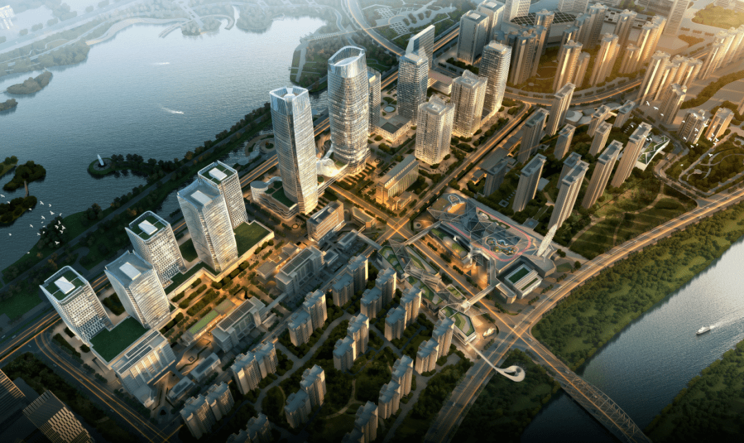 項目總投資150億元、建筑面積150萬平方米,分中央商務區、住宅區、中心商業區三大功能板塊。其中 A組團(中地塊)內建筑由超高層雙子地標塔樓組成,業態涵蓋國際酒店、潮流商業、商務辦公等。