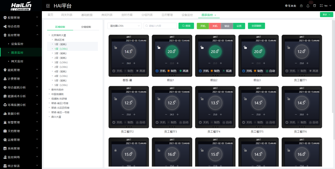在海林能源樓控系統中,能源管理、樓宇自控和照明系統的應用都置于同一個平臺中,并可以根據實際需求部署在本地或者云端,既兼顧了本地低延遲的實時性要求,又可以借助云端強大的存儲和計算能力,提供了更大的靈活性。