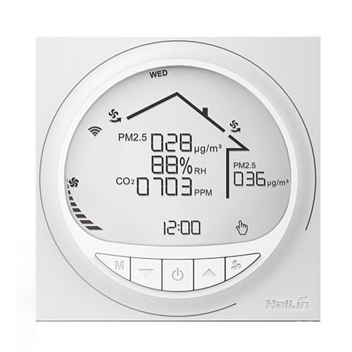 豪華型大液晶顯示新風控制器,可通過無線 APP 遠程操控,適用于工業、商業及 家庭居室的新風控制,可選擇風機為室內、室外循環模式,風機三速(自動、高、中、 低、關閉)可調,帶 RS485 通訊轉換控制。 新風控制器采用微電腦控制技術,大屏幕液晶顯示,可從云端獲取室內環境信息 并可通過液晶顯示:PM2.5 濃度顯示(ug/m3)、濕度顯示(%RH)、CO2濃度顯示(PPM)、 時鐘顯示 ...