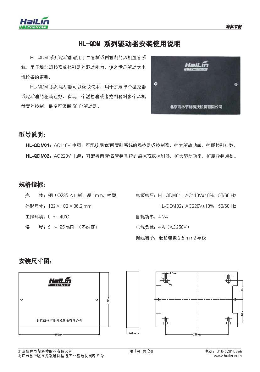 HL-QDM系列驅動器適用于二管制或四管制的風機盤管系統。用于增加溫控器或控制器的驅動能力,使用之滿足驅動大電流設備的需要。