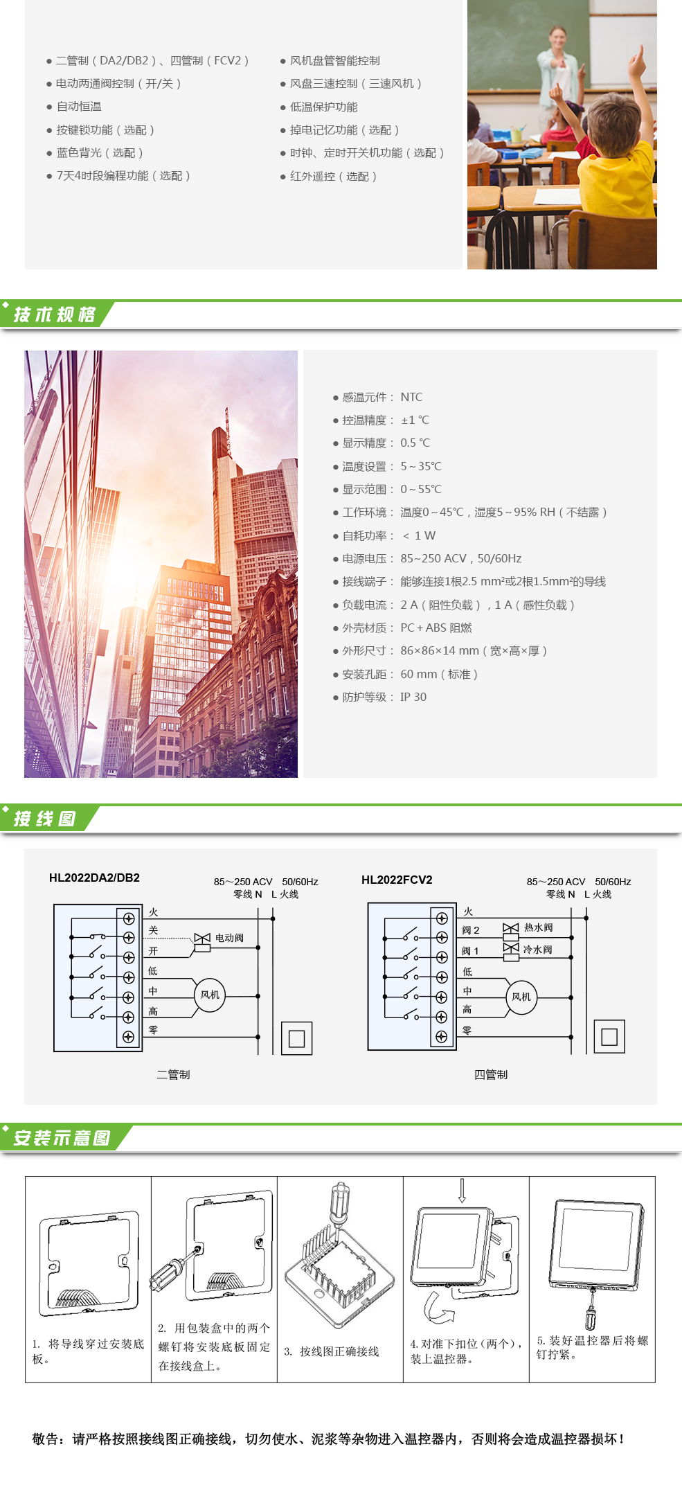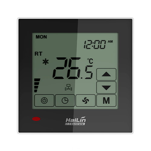 觸摸屏溫控器HL2022適用于中央空調風機盤管系統(tǒng)或風管道系統(tǒng)的室內溫度控制,通過室內溫度和設定溫度相比較,對空調系統(tǒng)末端的風機盤管、電動閥或電動球閥進行開啟和關閉控制,達到調節(jié)室內溫度、舒適及節(jié)能的目的。