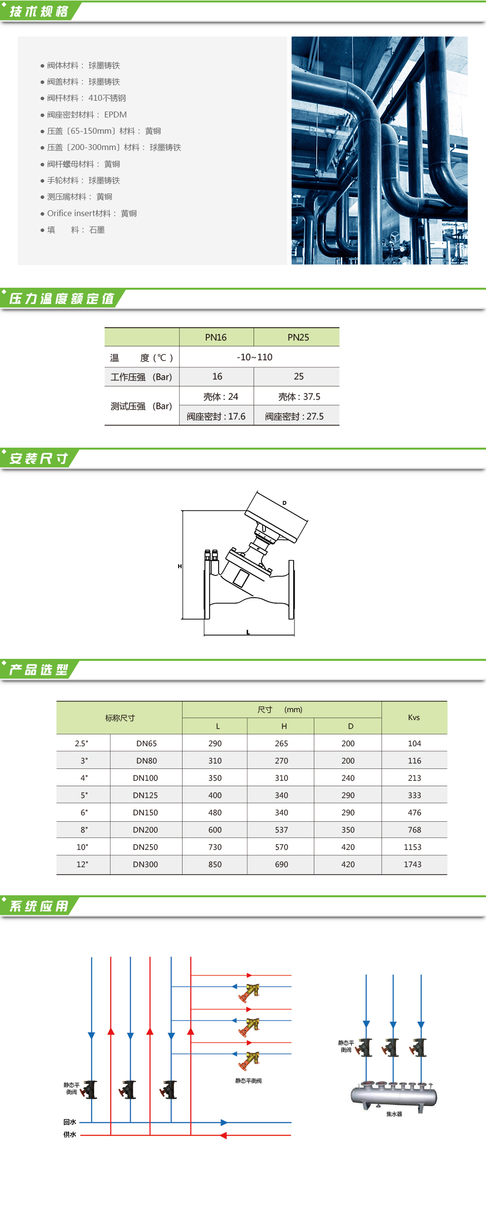 海林靜態(tài)平衡閥,可應(yīng)用于供熱或制冷的定量水系統(tǒng)中,用來平衡流量;具有關(guān)斷功能,可代替截止閥;具有最大行程鎖定功能,當(dāng)系統(tǒng)調(diào)試后,可將鎖定功能開啟,日后需要關(guān)閉靜態(tài)閥進(jìn)行管路維護(hù)與檢修,結(jié)束后可以直接將閥門恢復(fù)到設(shè)定好的最大行程處,避免二次調(diào)試,節(jié)約大量時(shí)間與成本;攜帶有測(cè)量接頭,方便與測(cè)量設(shè)備的快速連接,節(jié)省調(diào)試時(shí)間;可安裝于供水或回水管路。