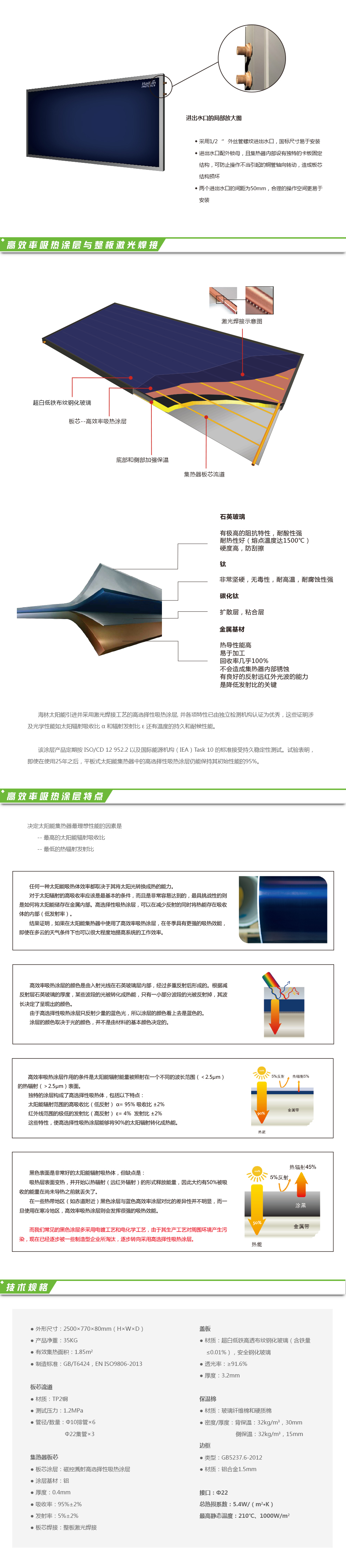 高效平板太陽能集熱器
