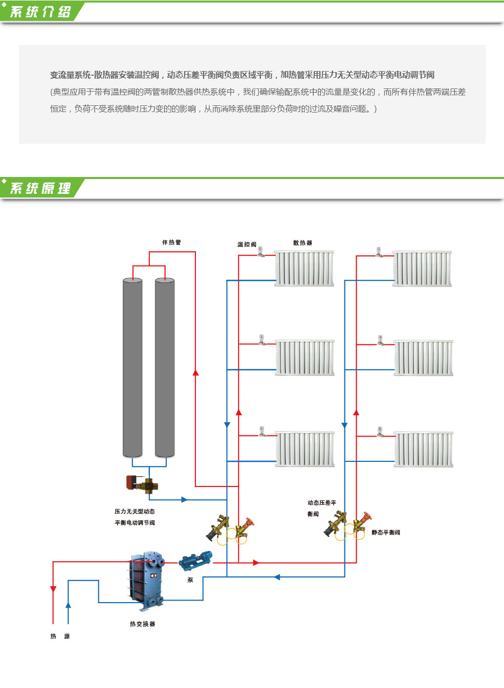 您的位置: 首頁> 解決方案> 變流量系統解決方案> 散熱器安裝溫控閥,動態壓差平衡閥負責區域平衡,加熱管采用壓力無關型動態平衡電動調節閥